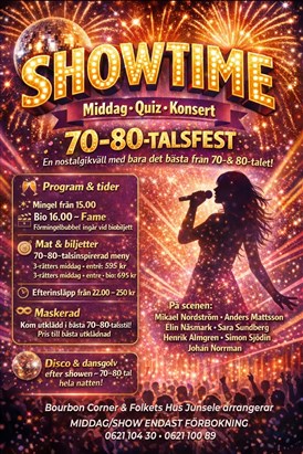 Lördag 28/3 så kommer 70-& 80-talet till Folkets Hus Forum i Junsele. Välkomna till en riktig nostalgikväll!!